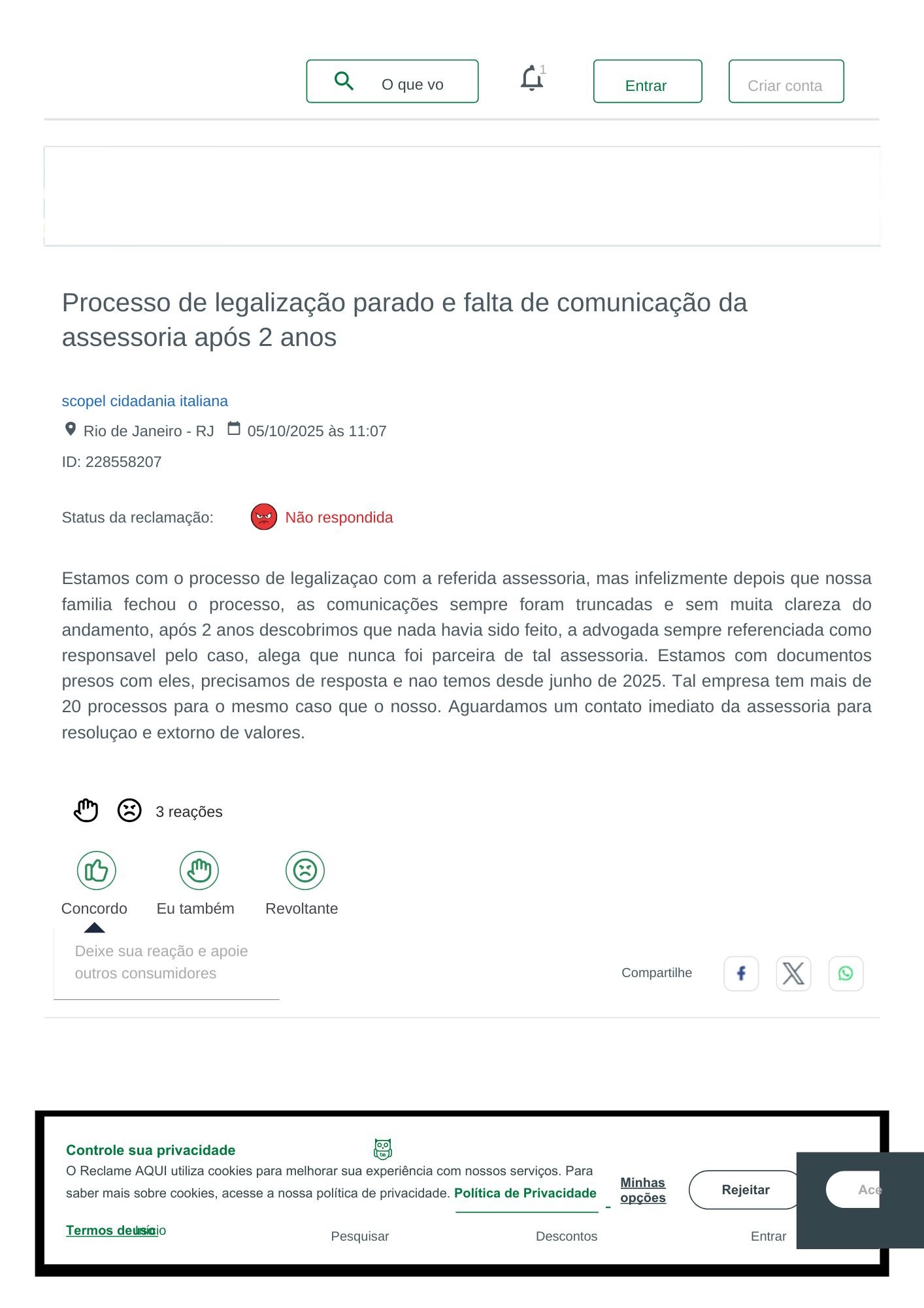 - Comunicação apenas por WhatsApp, sem escritório ou site ativo;