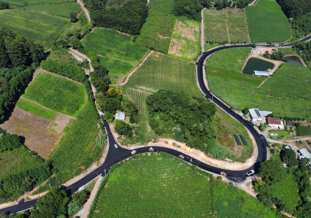 A pavimentação da estrada que liga as comunidades de São Gotardo, São Pantaleão e Linha Camargo entrou na reta final em Garibaldi, com o início da aplicação do asfalto no Trecho 2, marcando o avanço da maior obra viária já executada no município em extensão pavimentada.