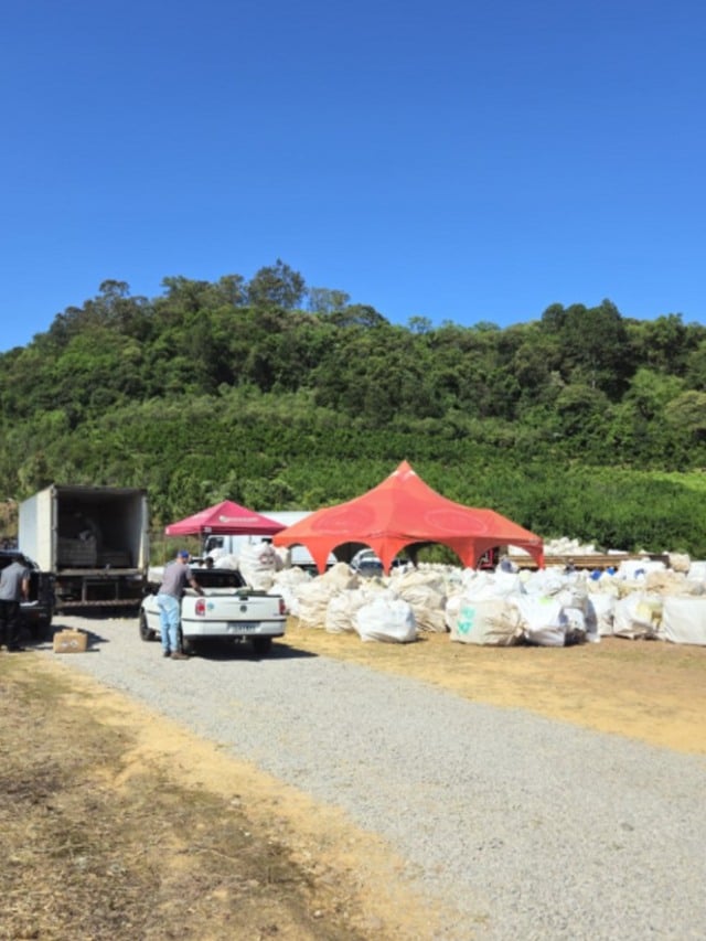 Na campanha do ano passado, foram recolhidas 38 toneladas de embalagens, com a participação de 600 agricultores, e o material foi enviado para a central de recebimento da inpEV em Vacaria.
