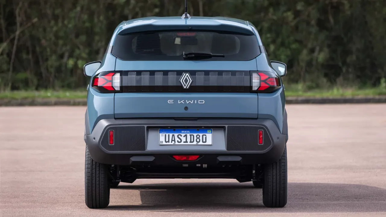 Na traseira, as lanternas em LED e o novo para-choque com acabamento bicolor reforçam a identidade visual elétrica, mais tecnológica e menos “popular”. Mesmo sendo compacto, o Kwid E-Tech 2026 transmite a sensação de ser mais carro — um ponto essencial para atrair o consumidor que quer inovação sem abrir mão de estilo. Essa evolução estética também o distancia da imagem de “versão adaptada”, colocando o hatch definitivamente como um produto pensado desde o início para ser elétrico.