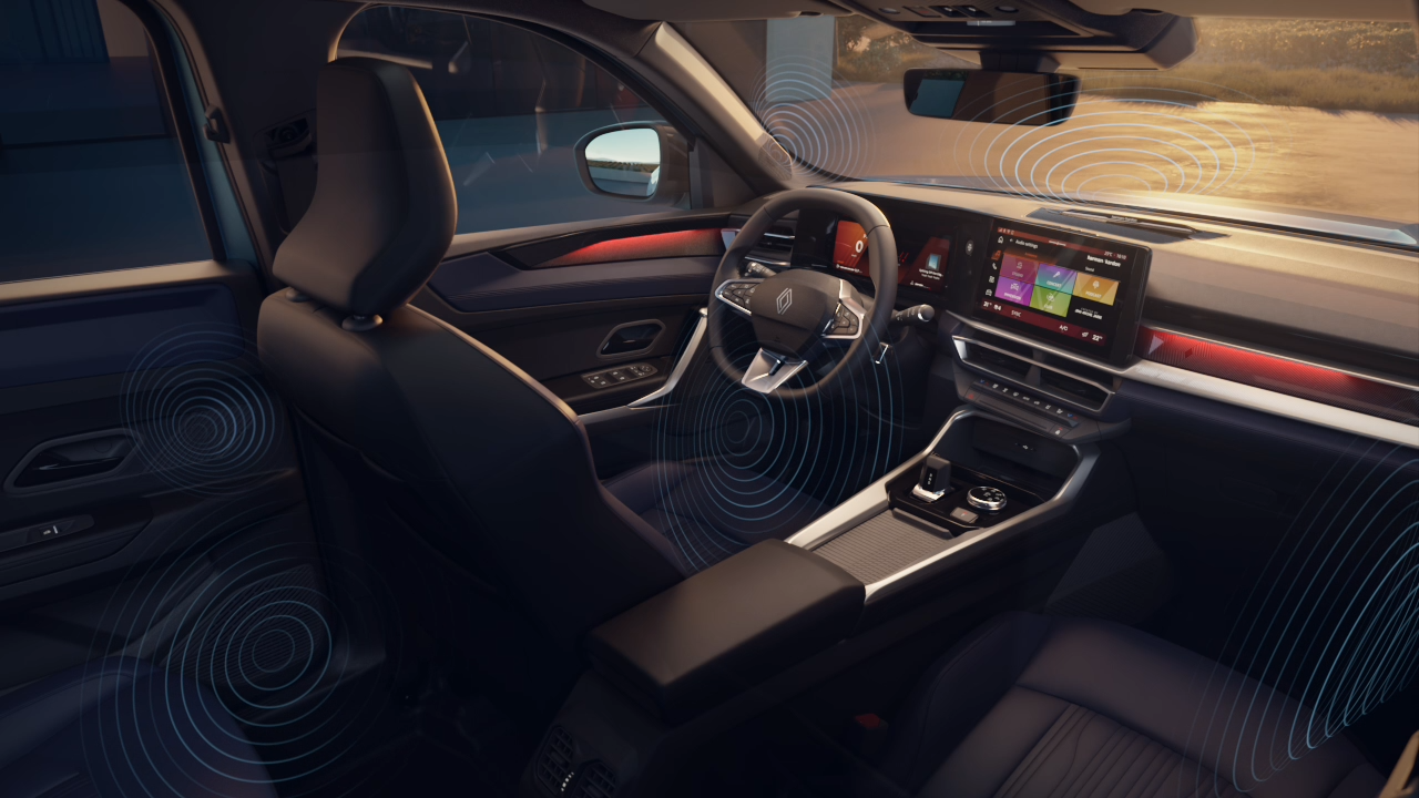 Na versão intermediária Techno, o nível de sofisticação sobe: o painel digital passa a ter 10” e o ambiente interno ganha iluminação configurável em 48 cores. Os bancos com ajuste elétrico e o som Arkamys com oito falantes elevam o conforto, enquanto o pacote de ADAS chega a 19 funções — com assistente de permanência em faixa, controle adaptativo de velocidade e alerta de ponto cego.
