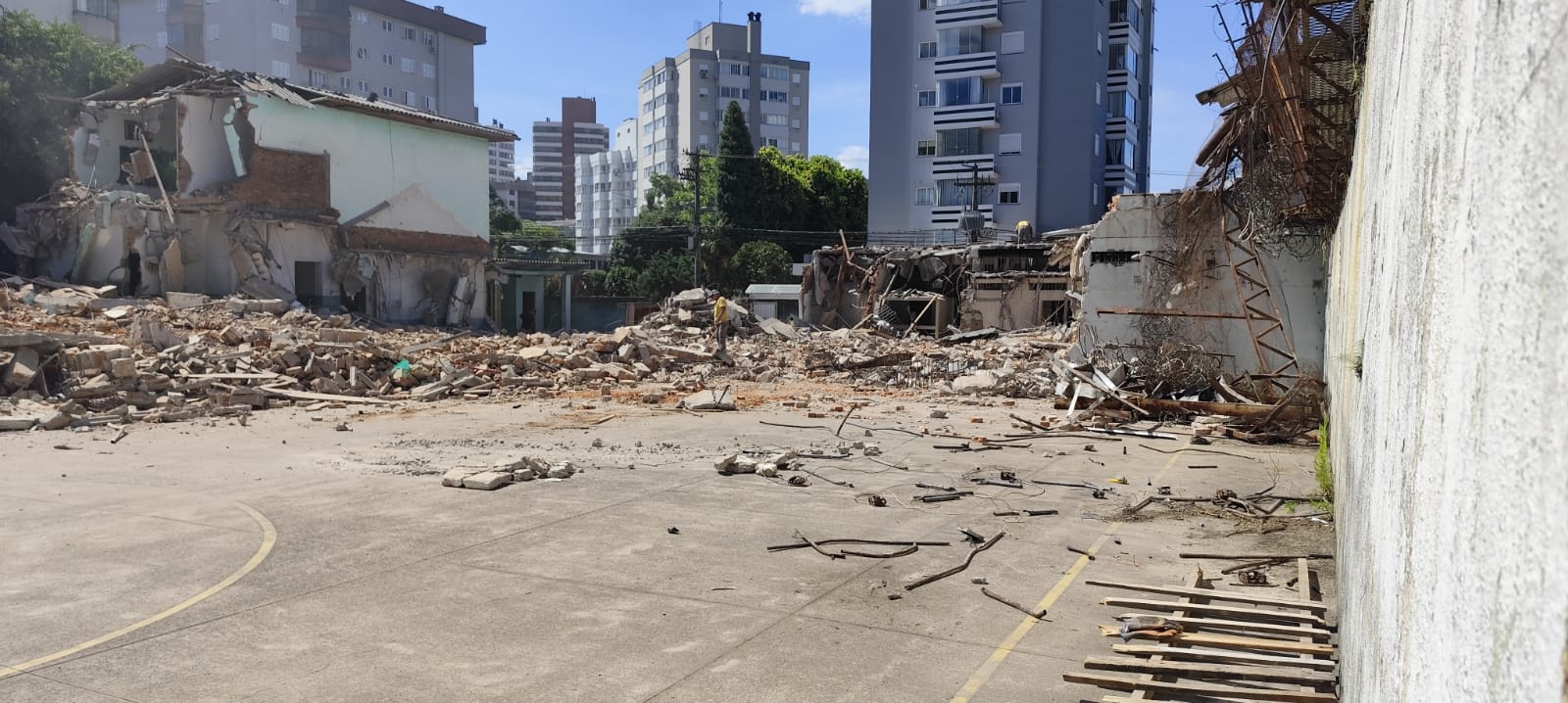 A remoção do telhado de amianto ocorre de forma manual, assim como a retirada de telhas e da caixa d’água. O material, considerado contaminante, não pode ser descartado junto ao entulho comum. A demolição mecanizada também já começou nesta sexta-feira (5) e deve se intensificar na próxima semana.