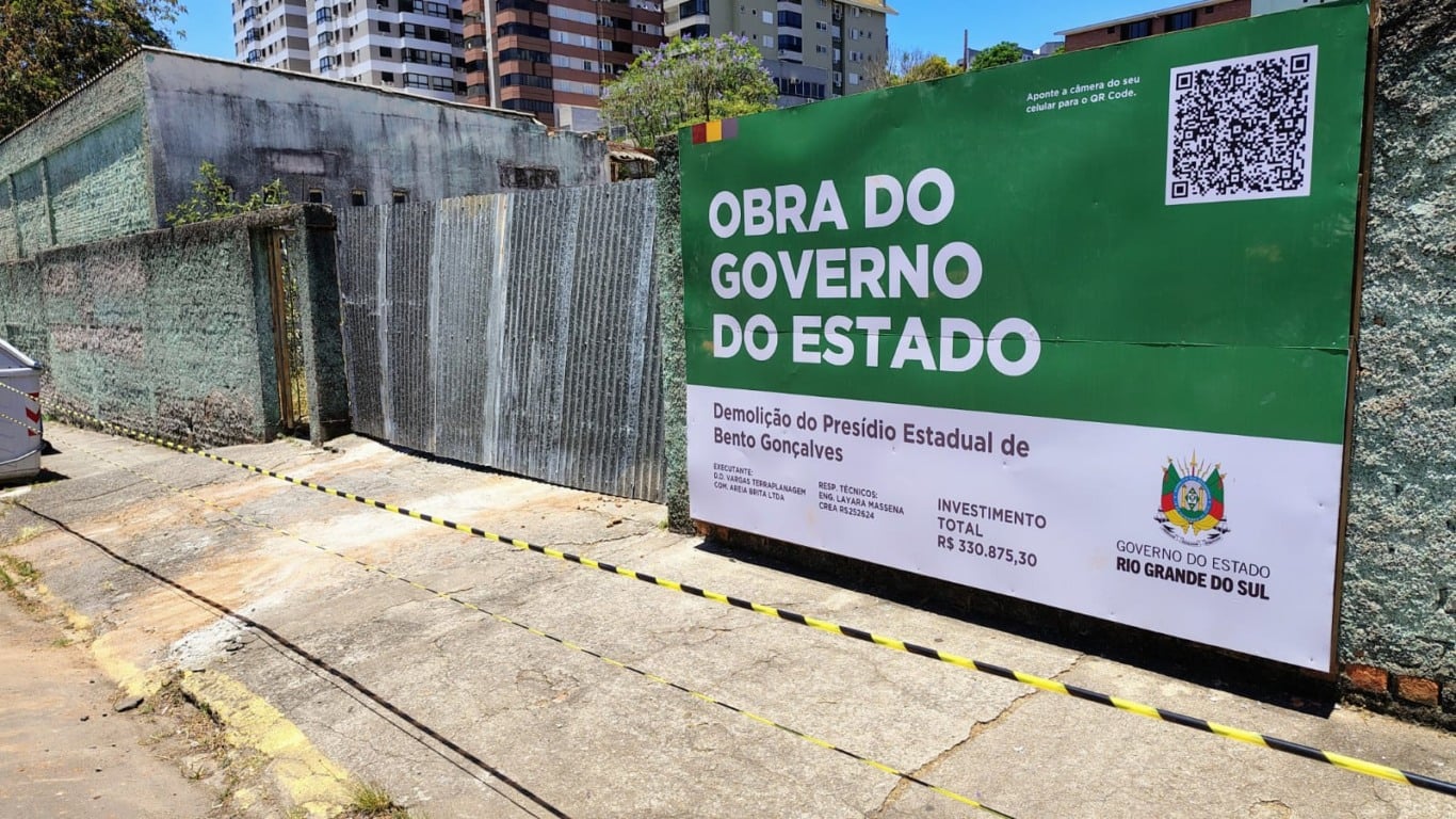 O governo do Estado iniciou na terça-feira (2) a demolição do antigo Presídio Estadual de Bento Gonçalves, na Rua Assis Brasil, no Centro. A estrutura, inativa desde 2019 e marcada por décadas de superlotação e problemas de segurança, será completamente derrubada em até 45 dias.