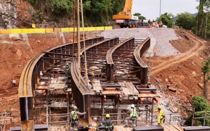 Bento Gonçalves e Veranópolis - O primeiro viaduto da reconstrução da BR-470, na Serra do Rio das Antas, segue ganhando forma. O Departamento Nacional de Infraestrutura de Transportes (DNIT) trabalha na instalação das vigas metálicas do Viaduto A, etapa essencial para a conclusão da estrutura no Km 192 da rodovia.