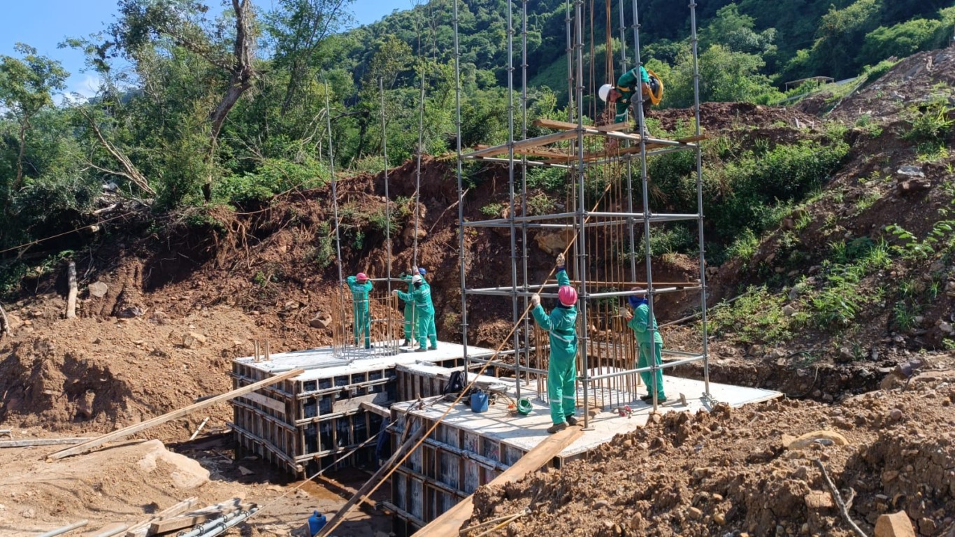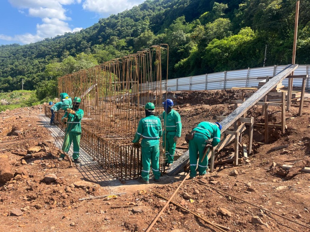 O Departamento Autônomo de Estradas de Rodagem (Daer) informa que a obra da nova ponte de Santa Bárbara, na ERS-431, está na fase de concretagem dos pilares, com execução de blocos e estacas. A previsão de conclusão permanece para 2026.