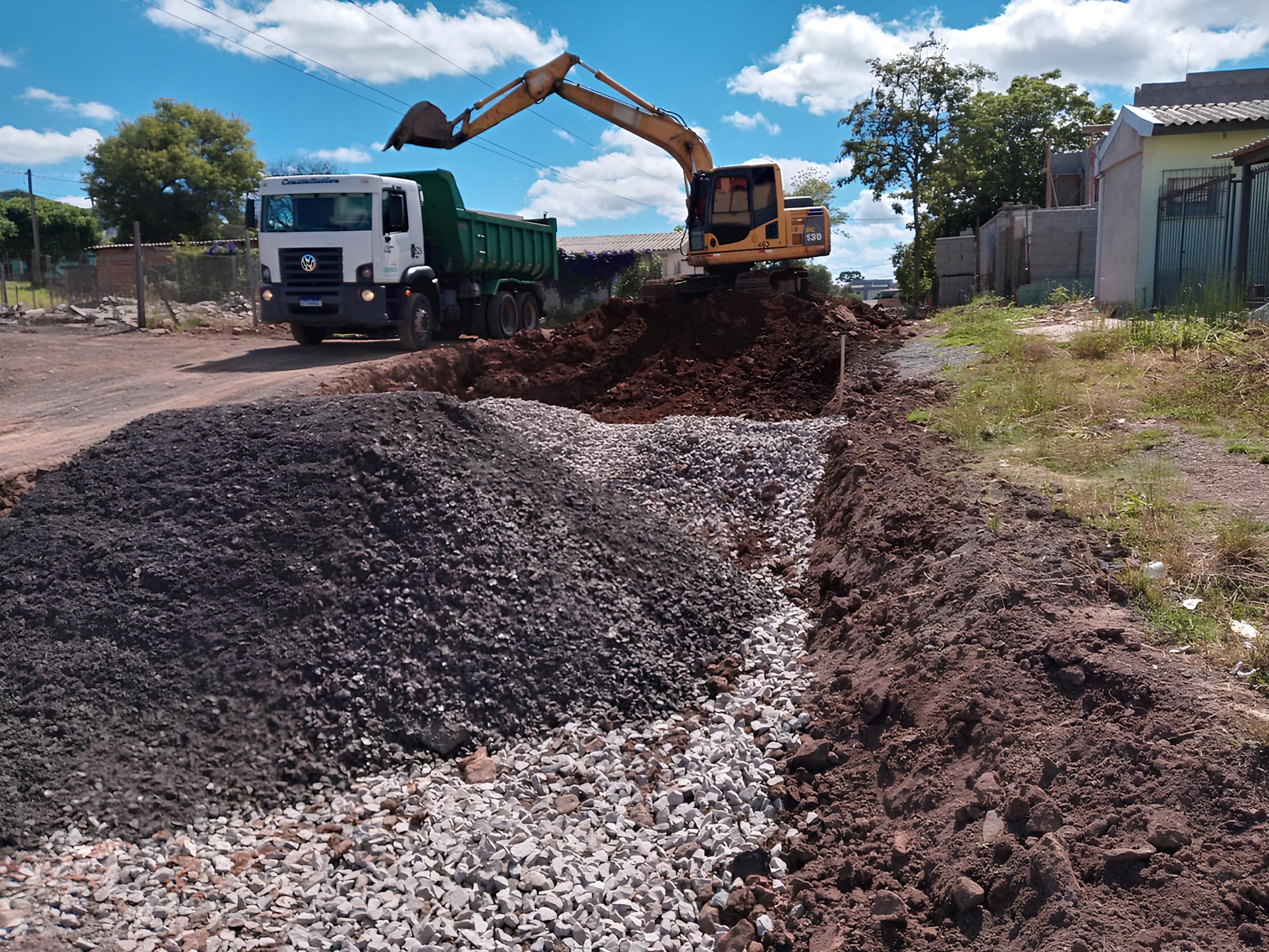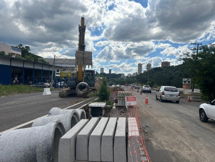 Com a primeira etapa da drenagem finalizada, as equipes agora trabalham na conclusão dos passeios públicos e na colocação de meios-fios no sentido norte-sul da rodovia. Paralelamente, novas escavações já estão em andamento para a implantação de mais tubulações de grande diâmetro, que vão cruzar a BR-116.