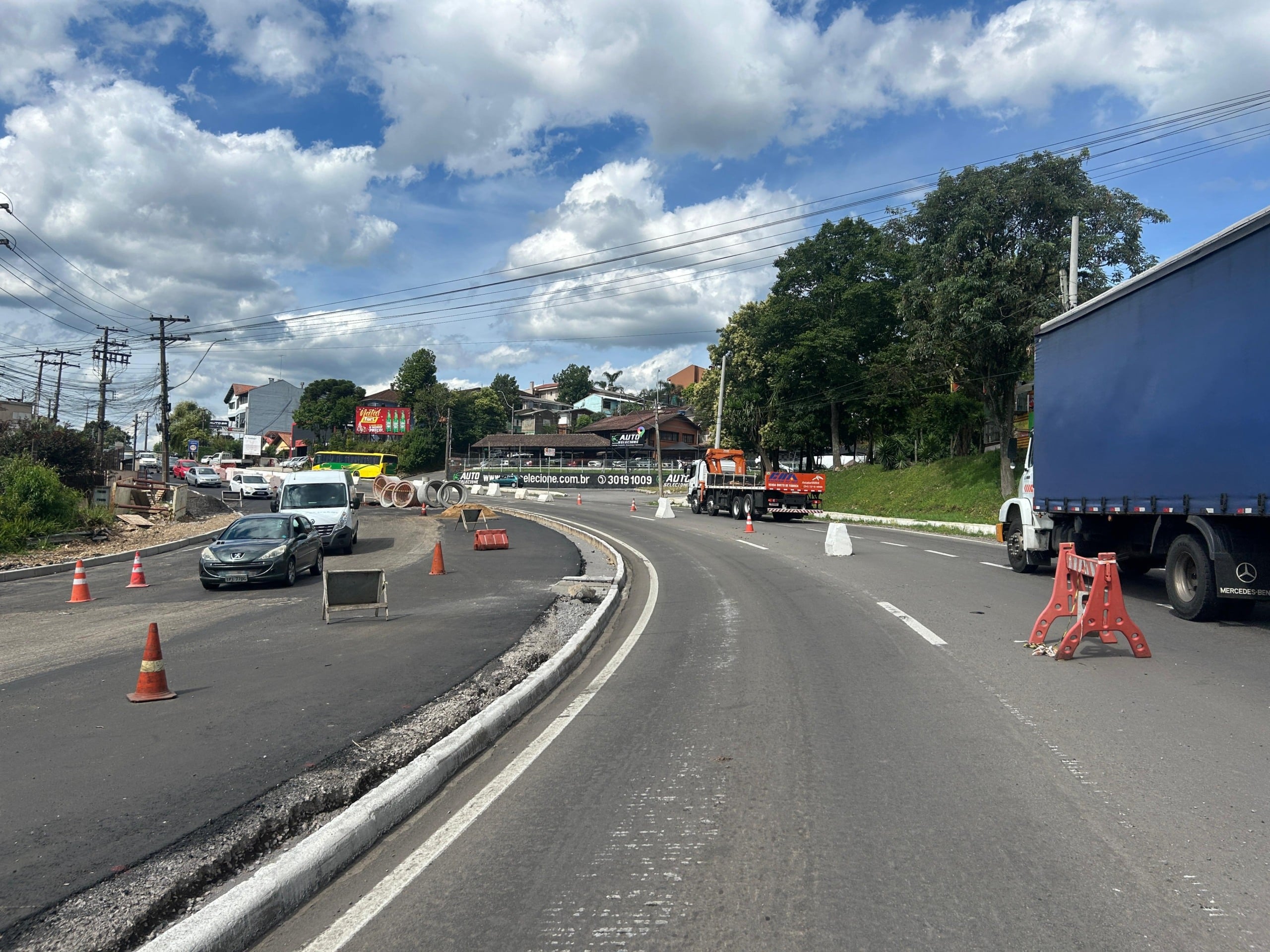 A circulação de veículos na BR-116, no trecho da obra de acesso ao bairro Planalto, em Caxias do Sul, foi restabelecida em uma pista em cada sentido da rodovia federal. A Codeca concluiu as escavações e a implantação das redes de drenagem no local. A base da estrada foi reconstruída e recebeu uma nova camada de asfalto, mas o bloqueio de uma faixa em cada direção permanece para a continuidade dos serviços.