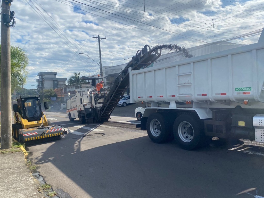 As obras de manutenção e melhorias na rua Barão do Rio Branco, em Farroupilha, estão ocorrendo na manhã desta quinta-feira (8). Os trabalhos estão concentrados no entroncamento da RSC-453 até a rua José Gasperin e incluem fresagem, limpeza da pavimentação existente e aplicação de nova camada asfáltica.