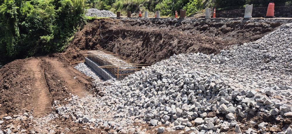 No local, os trabalhos já atingiram a fase de construção do segundo andar dos módulos de pedra. Este progresso consolida a evolução das obras no chamado Trecho 1 da via, que sofreu com infiltrações e processos erosivos agravados pelas fortes chuvas do ano passado.