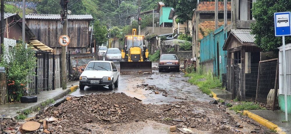 A Secretaria de Obras (SMO) de Caxias do Sul segue realizando a limpeza de uma das três caixas de drenagem pluvial do bairro Cânyon nesta sexta-feira (26). A ação ocorre após fortes chuvas, somadas ao lixo descartado irregularmente no local, provocarem o transbordamento de uma das estruturas, causando alagamentos no bairro.