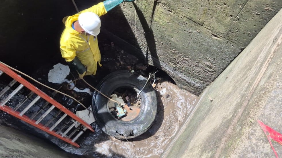 De acordo com a Secretaria Municipal de Obras (SMO), o bloqueio da canalização foi causado principalmente pelo descarte irregular de um pneu de caminhão, além de outros resíduos acumulados na estrutura de drenagem.
