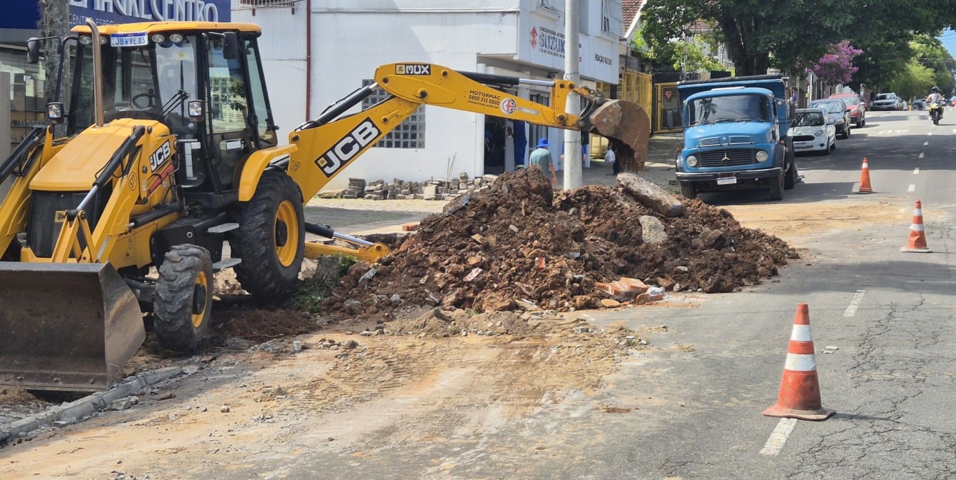 As obras ocorrem principalmente na calçada, com escavações e ajustes na tubulação existente para restabelecer o escoamento adequado da água da chuva. Devido ao movimento de terra, ao uso de maquinário pesado e à circulação de caminhões, foi necessário interditar temporariamente o estacionamento e uma das faixas da via para manobras operacionais.