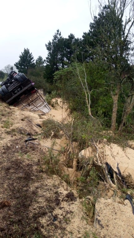 Durante a tarde, por volta das 15h10, outro registro foi feito na BR-285, desta vez no km 97,8. Um caminhão carregado com farelo de soja saiu da pista, provocando ferimentos no motorista. O homem foi socorrido e levado para atendimento médico, e a carga ficou espalhada às margens da rodovia.