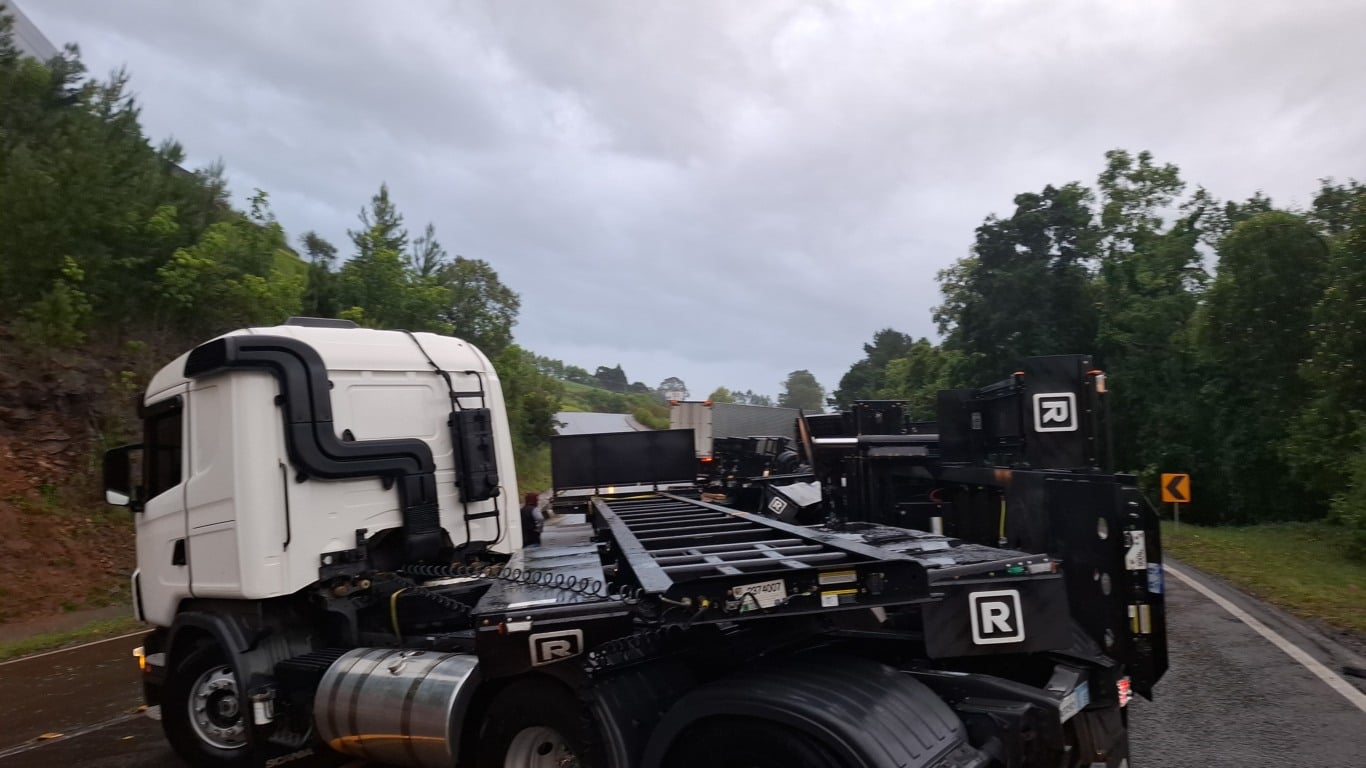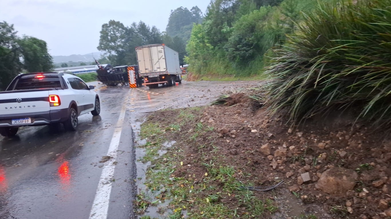 Apesar da dimensão do acidente, ninguém se feriu. A Concessionária Caminhos da Serra Gaúcha (CSG) atende a ocorrência.