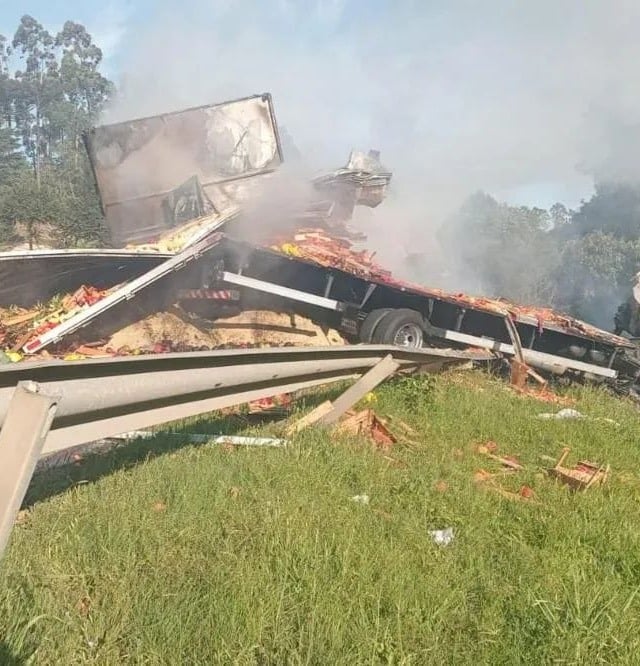 A colisão provocou um incêndio que atingiu parte dos veículos e mobilizou equipes da PRF, Corpo de Bombeiros, IGP e CCR ViaSul. A pista ficou totalmente bloqueada por cerca de três horas durante o combate às chamas e o trabalho de resfriamento. O tráfego foi liberado parcialmente por volta das 11h15min, com previsão de normalização completa ao longo da tarde.