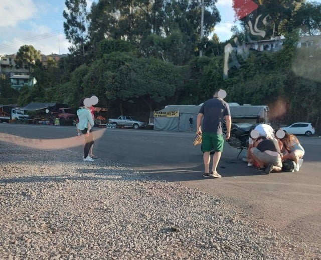 Conforme relatos de populares que presenciaram o fato, o motociclista realizava o contorno pela rotatória quando foi atingido pela caminhonete, que seguia pela rodovia. Com o impacto, o condutor da moto caiu e ficou ferido.