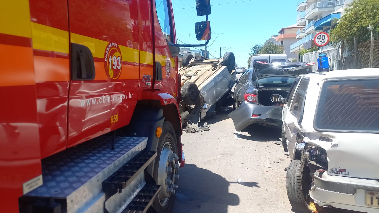 Caxias do Sul - Um acidente de trânsito envolvendo quatro veículos foi registrado na Rua Bortolo Zani, no bairro Bela Vista, em Caxias do Sul, no início da tarde desta sexta-feira (6). De acordo com informações apuradas no local, um veículo de aplicativo, modelo Ford/Ka, seguia no sentido bairro quando um cachorro atravessou a via. Ao tentar desviar para evitar o atropelamento, o motorista acabou colidindo na traseira de um Fiat/Uno.