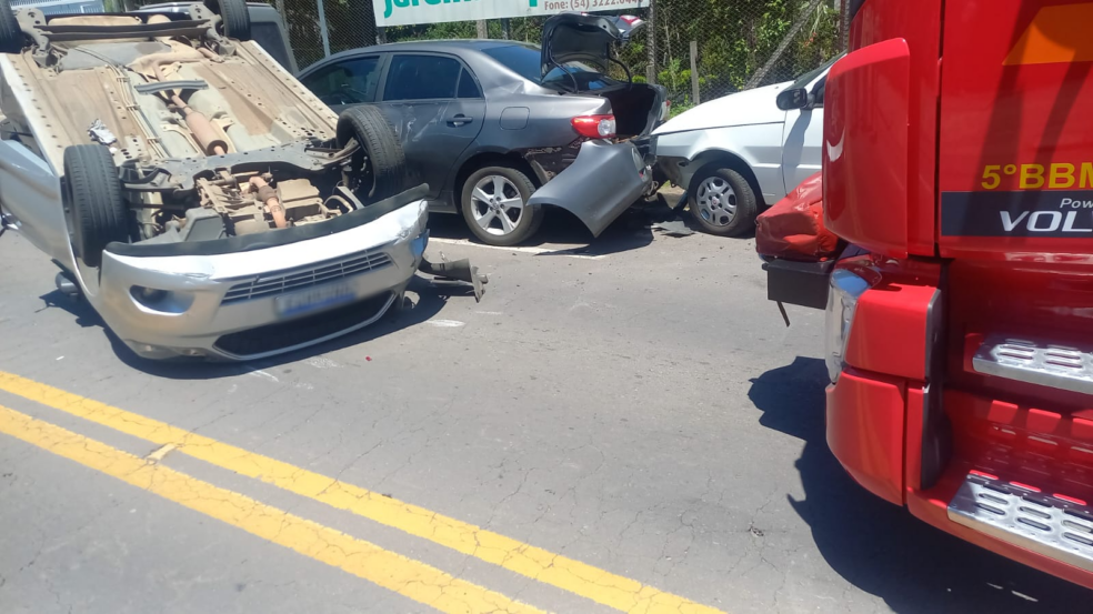 Caxias do Sul - Um acidente de trânsito envolvendo quatro veículos foi registrado na Rua Bortolo Zani, no bairro Bela Vista, em Caxias do Sul, no início da tarde desta sexta-feira (6). De acordo com informações apuradas no local, um veículo de aplicativo, modelo Ford/Ka, seguia no sentido bairro quando um cachorro atravessou a via. Ao tentar desviar para evitar o atropelamento, o motorista acabou colidindo na traseira de um Fiat/Uno.