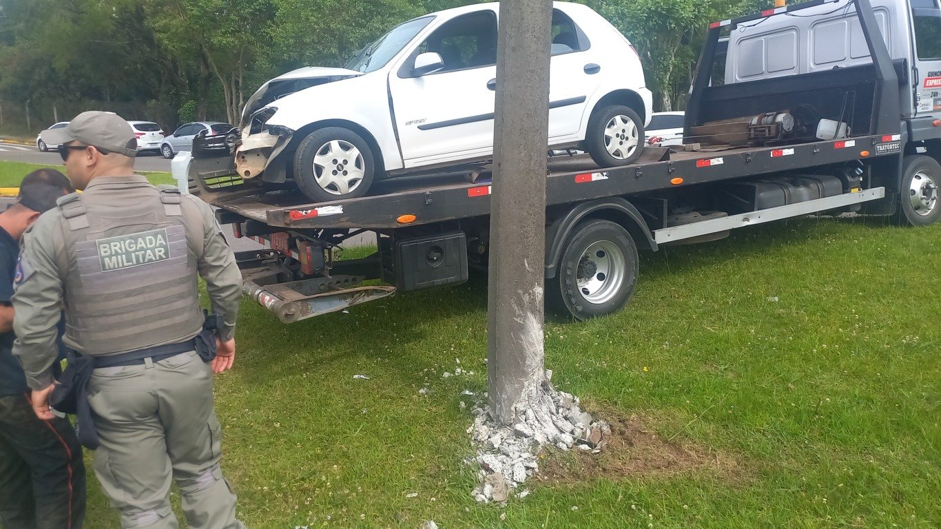 O veículo, um Celta branco, foi o único envolvido na colisão. O trânsito chegou a ficar parcialmente bloqueado, mas já foi totalmente liberado após a retirada do automóvel.