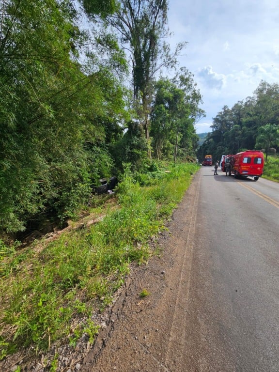 Monte Belo do Sul e Santa Tereza - Um sinistro de trânsito do tipo saída de pista foi registrado na tarde de sexta-feira (9), por volta das 16h09, na Estrada do Vinho, entre os municípios de Monte Belo do Sul e Santa Tereza. A ocorrência mobilizou o Corpo de Bombeiros Militar, da 3ª Companhia de Bento Gonçalves, acionado pela Polícia Rodoviária Estadual.