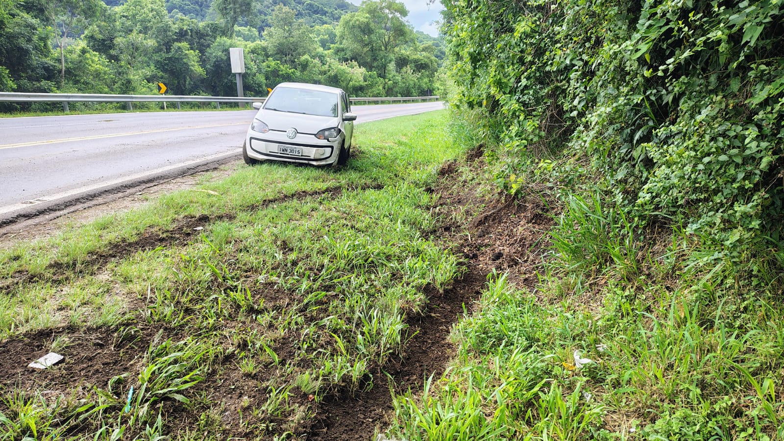 Um acidente foi registrado por volta das 15h30 desta tarde de terça-feira (30) na BR-470, no bairro Aparecida, em Bento Gonçalves. Um Volkswagen Up saiu da pista e colidiu contra um barranco.