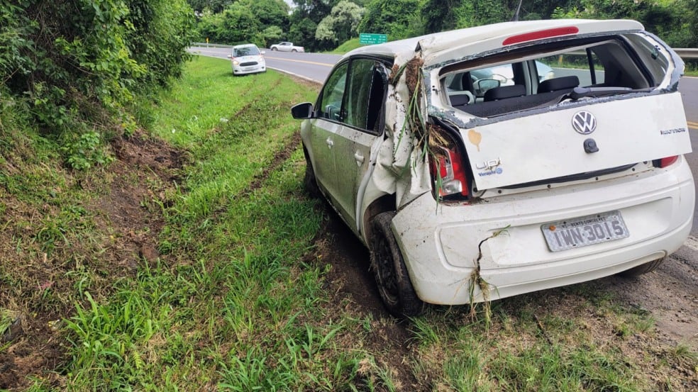 O veículo já foi retirado da pista e colocado no acostamento, mas o trecho ainda exige atenção dos motoristas. O acidente ocorreu no quilômetro 211 da BR-470, próximo ao acesso para Faria Lemos (ERS-431), em um ponto de curva.