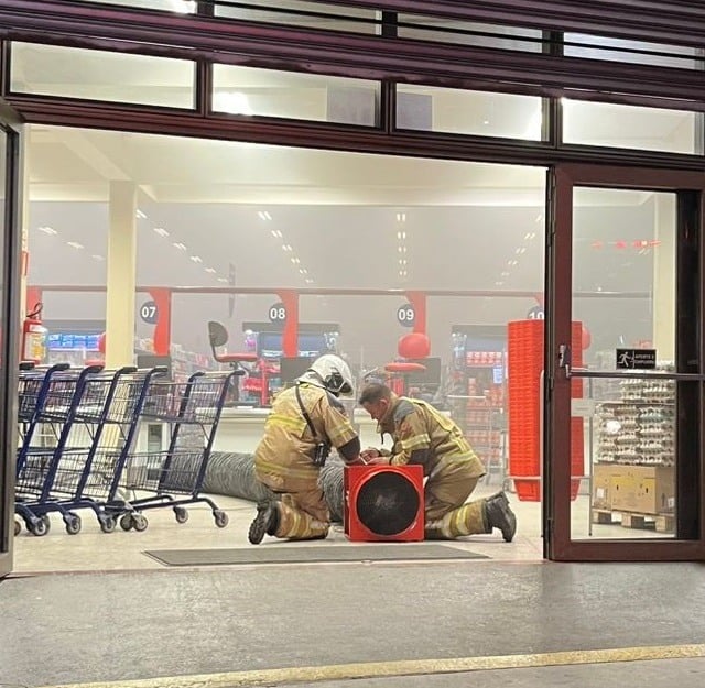 Para dispersar a fumaça, a guarnição promoveu ventilação natural com a abertura de portas e janelas e utilizou exaustor. O gerente do estabelecimento recebeu orientações e foi informado sobre os danos em eletrodomésticos, equipamentos e estruturas internas.