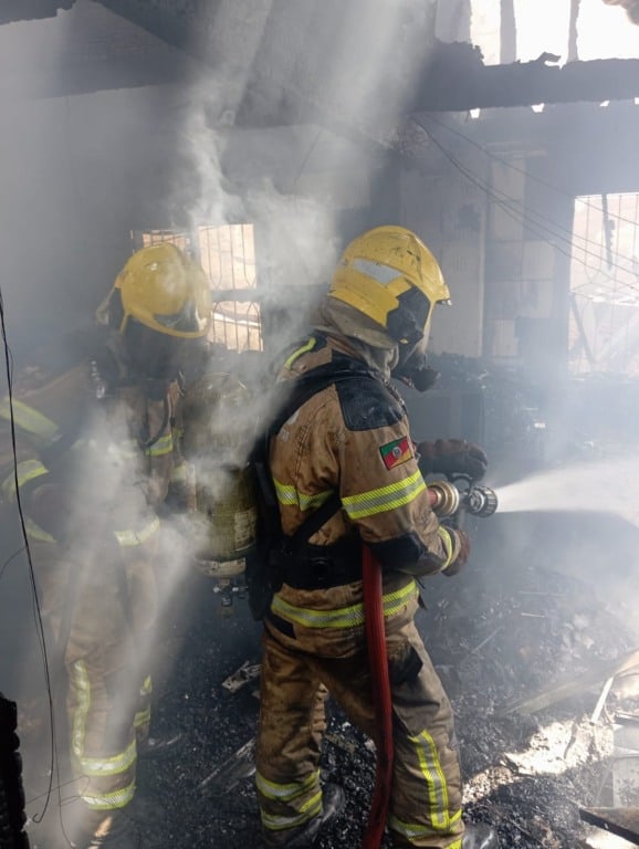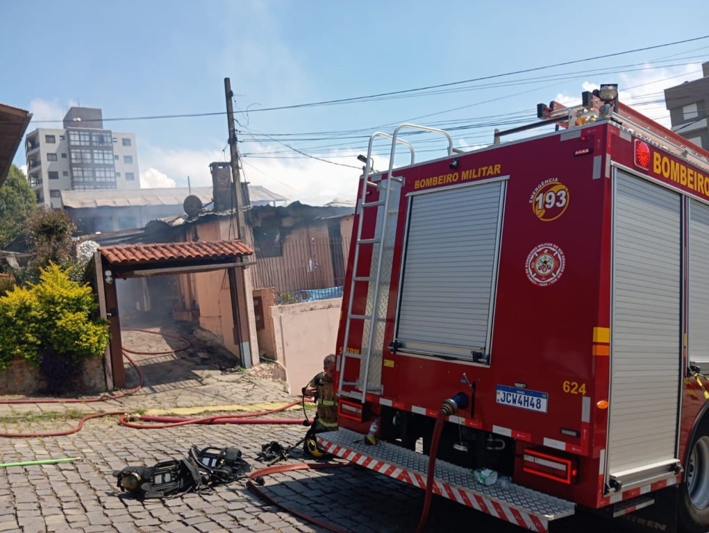 O fogo começou por volta das 12h30 e, conforme os bombeiros, teve início em um quarto no andar superior da primeira residência, provocado por um curto-circuito. O imóvel, de construção mista e com dois pavimentos, foi completamente consumido pelas chamas, resultando em perda total.