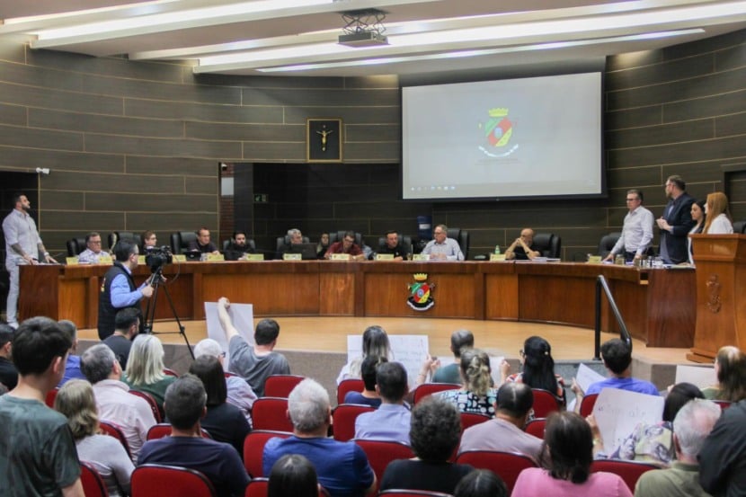 Votos contrários: Darlan de Jesus (PL), Fernanda Correa (União Brasil), Fran Bonaci (PDT), Juliano Baumgarten (PSB) e Roque Severgnini.