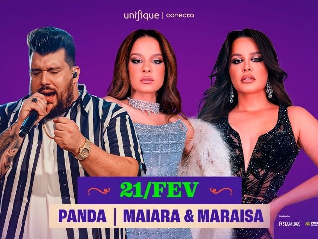 A Festa da Uva entra na sua semana mais aguardada e já começa no modo máximo: dia 21 de fevereiro, o palco principal recebe um encontro que promete lotar, emocionar e surpreender — Maiara & Maraisa e Panda.