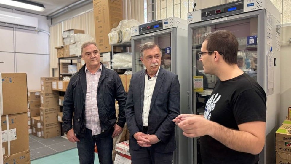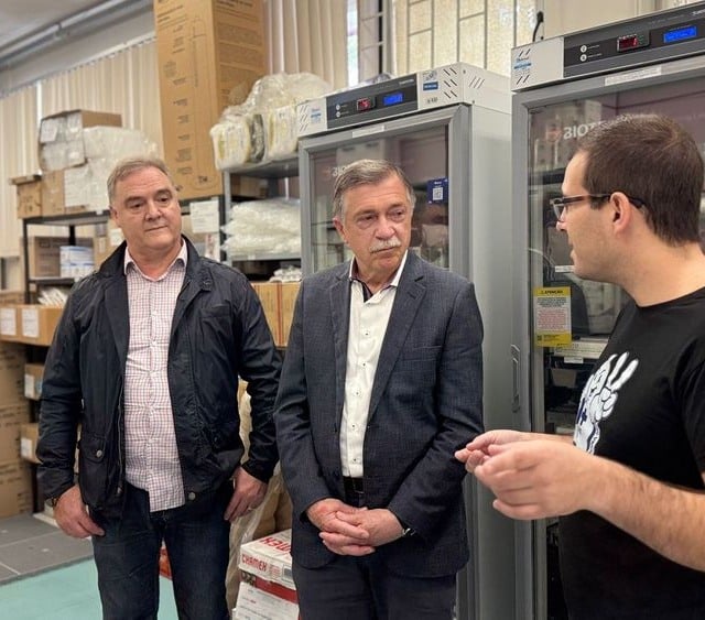 Na manhã desta sexta-feira (14), o Prefeito Adiló Didomenico, o vice-prefeito Edson Néspolo e o secretário municipal da Saúde, Rafael Bueno, estiveram no Hemocs para verificar o acondicionamento do material.