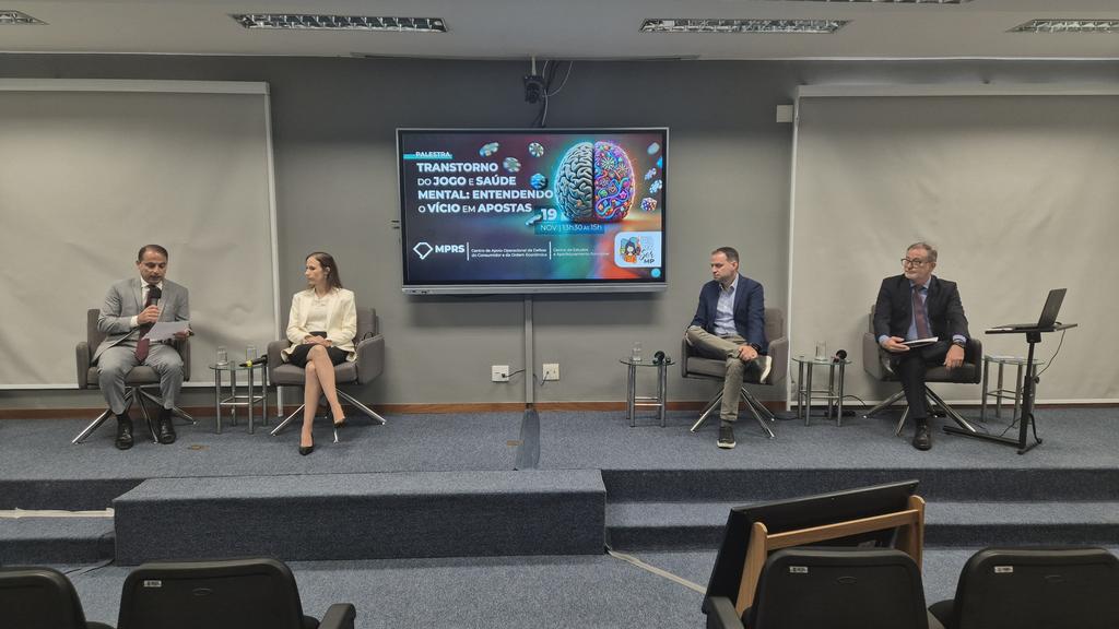 O Ministério Público do Rio Grande do Sul (MPRS), por iniciativa do Centro de Apoio Operacional do Consumidor e da Ordem Econômica (CAOCON) e do Centro de Estudos e Aperfeiçoamento Funcional (CEAF), realizou nesta quarta-feira (19), a palestra “Transtorno do Jogo e Saúde Mental: Entendendo o Vício em Apostas”. A atividade integra o Programa PertenSER e teve como objetivo esclarecer os impactos do vício em apostas, alertando para o alto potencial de dependência e suas consequências à saúde mental e à vida econômica das pessoas.