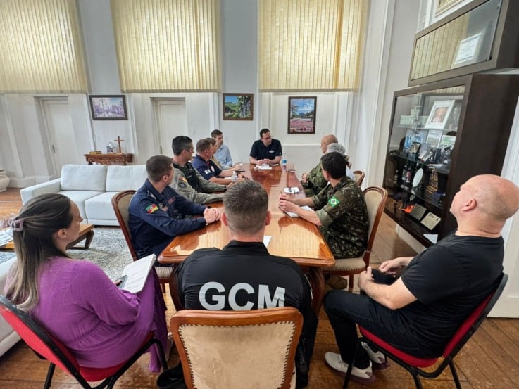 Participaram do encontro o prefeito Diogo Siqueira, a vereadora Letícia Bonassina, o procurador-geral do município, Gustavo Scharamm, os secretários municipais de Segurança, Gabriel Kellerman, e de Meio Ambiente, Volnei Tesser, além de representantes da Brigada Militar, Exército, Patran, Corpo de Bombeiros e Guarda Civil Municipal.