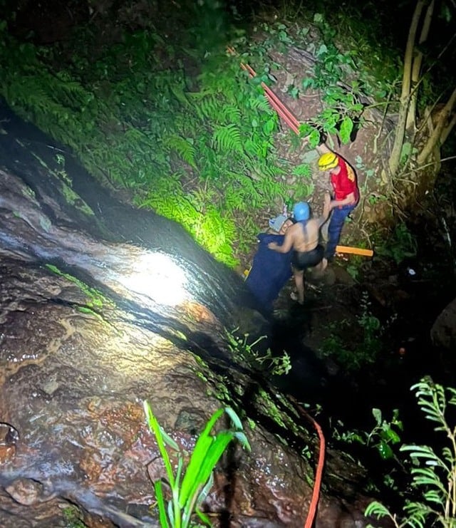 A guarnição foi acionada por volta das 19h30 pelo telefone 193 e solicitou apoio do Samu diante da gravidade inicial do chamado. As equipes se encontraram nas proximidades da igreja do município e seguiram até o ponto mais próximo de acesso. A partir dali, o deslocamento ocorreu a pé, com equipamentos de resgate, até o topo da cachoeira.