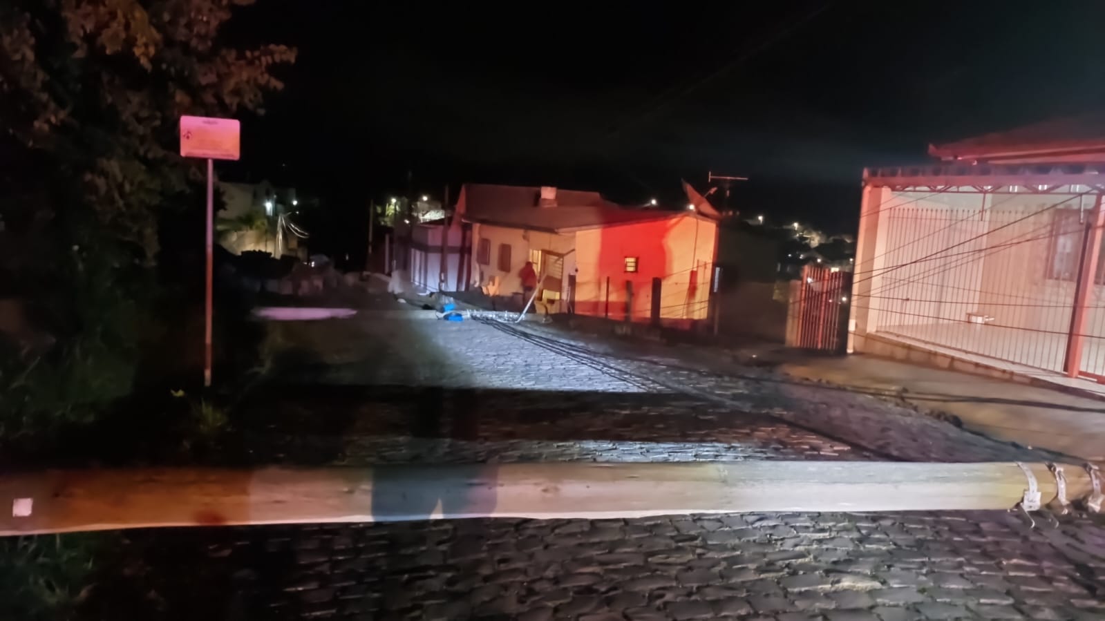 Um muro de blocos de concreto desabou na rua Caxias do Sul, no bairro Cidade Alta, em Bento Gonçalves, na noite desta sexta-feira (7). O desmoronamento obstruiu completamente a via e atingiu a rede elétrica, derrubando quatro postes.