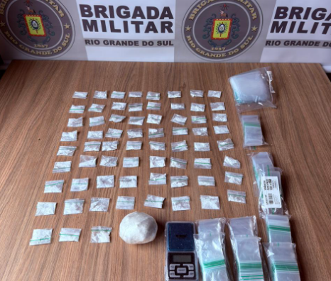 Durante a abordagem, os policiais localizaram 67 porções de cocaína, que totalizaram 50 gramas, além de uma porção maior da droga, pesando 107 gramas. Também foram apreendidas uma balança de precisão e diversas embalagens tipo zip lock, utilizadas para o fracionamento e a comercialização do entorpecente.