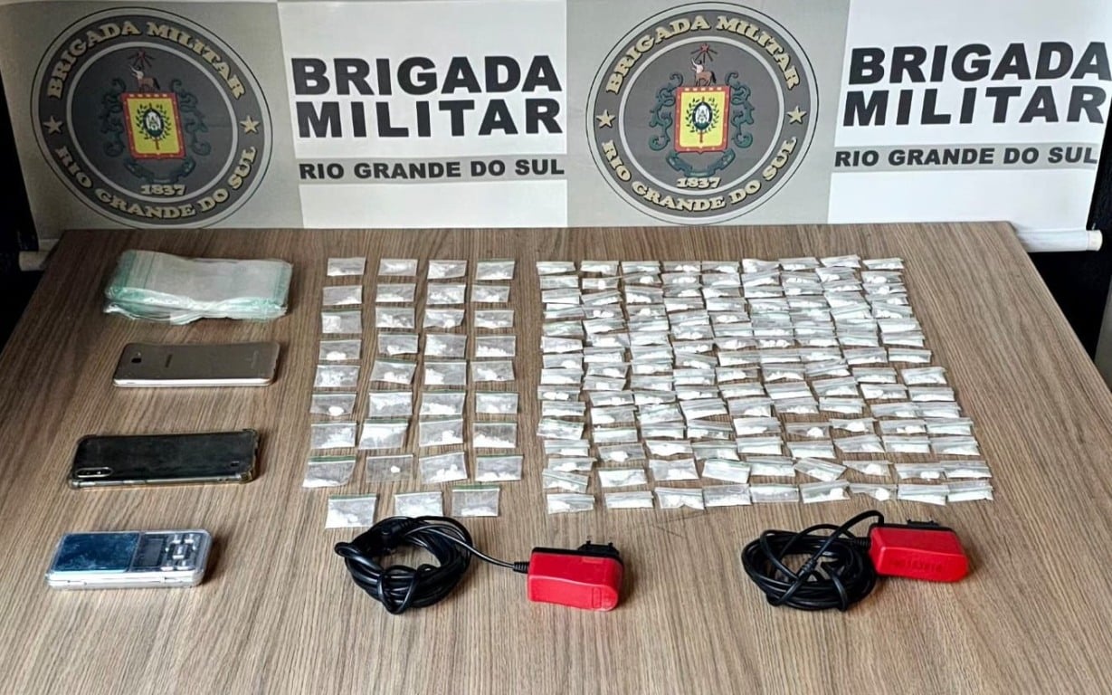 Os policiais já tinham conhecimento do mandado de prisão em aberto contra o suspeito. Durante a abordagem, foram apreendidas 170 porções de cocaína, dois celulares, uma balança de precisão e diversas embalagens do tipo ziplock.