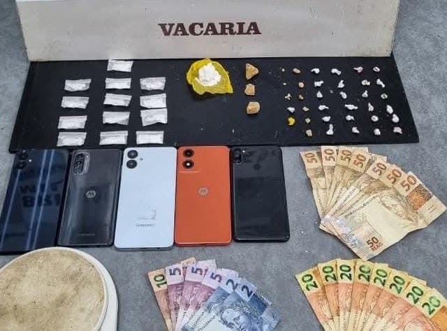 Na sequência, outros dois indivíduos, também conhecidos pelo envolvimento com o tráfico na região, foram detidos. O grupo possuía mais porções de drogas, além de dinheiro, uma balança de precisão e celulares utilizados na atividade criminosa.