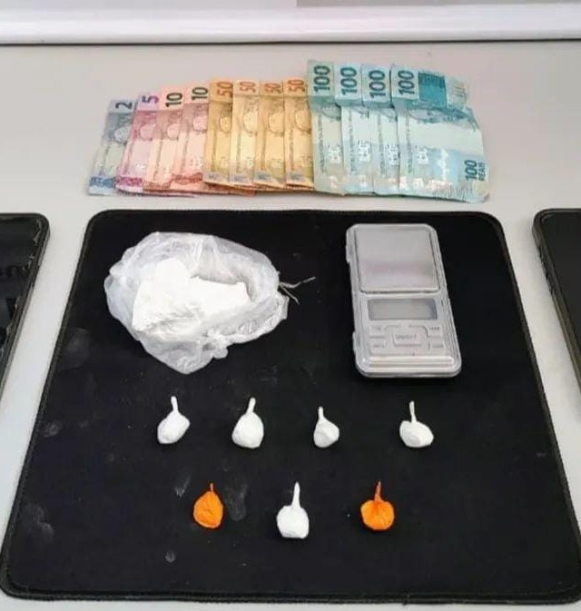 A Força Tática abordou um jovem de 23 anos com 47 gramas de cocaína e R$ 627. Os policiais também prenderam um homem de 30 anos que carregava sete porções de cocaína. As equipes apreenderam ainda dois celulares e uma balança de precisão.