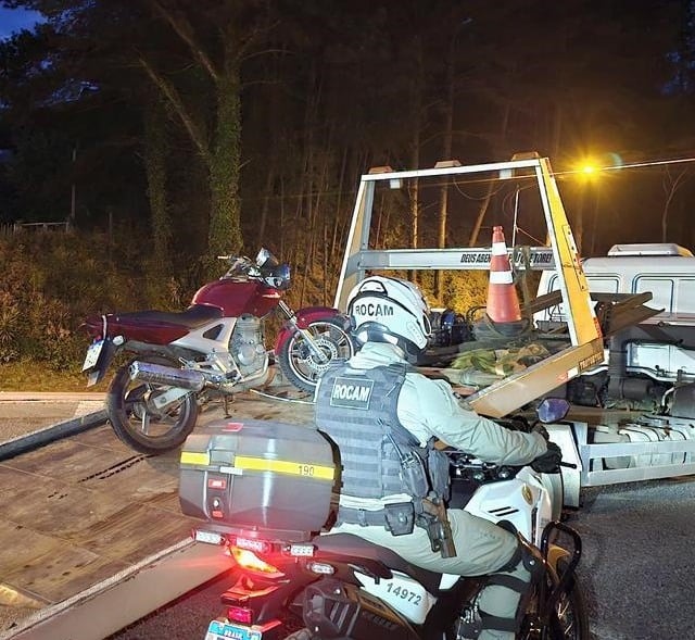 Diante da situação, a motocicleta foi removida por um guincho credenciado, e os dois homens foram encaminhados à Delegacia de Polícia para o registro da ocorrência.