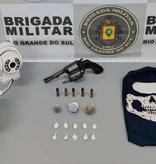 Durante patrulhamento motorizado, os policiais abordaram o suspeito, que já possuía antecedentes por tráfico. Na revista, encontraram um revólver calibre .38, dez porções de cocaína — totalizando 6 gramas — e três porções de maconha — somando 10 gramas.