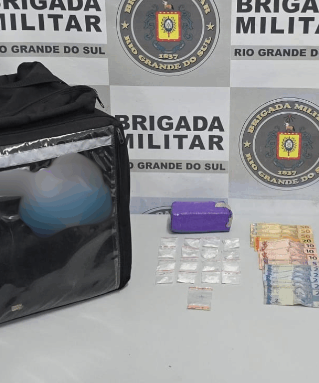 Segundo a Brigada Militar, o suspeito foi abordado durante patrulhamento e, com ele, os policiais encontraram 16 porções de substância semelhante à cocaína, totalizando 13,08 gramas, além de 380 gramas de substância com características semelhantes à maconha e três comprimidos de substância com características semelhantes ao ecstasy. Além das drogas, também foram apreendidos R$ 215,00 em espécie, um celular, uma mochila tipo bag de tele-entrega e uma motocicleta Mottu 110cc.