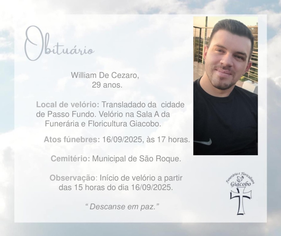 Bento Gonçalves e Guaporé - William de Cezaro, de 29 anos, morador de Bento Gonçalves, foi morto na manhã de segunda-feira (15) após um confronto com a Brigada Militar em Guaporé. Ele foi baleado durante uma tentativa de assalto a uma distribuidora de bebidas no bairro Centro e morreu logo após dar entrada no Hospital Manoel Francisco Guerreiro.