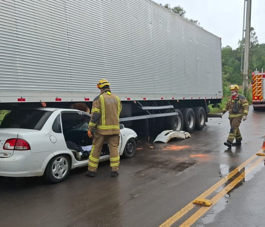 O motorista, que dirigia um Corsa Sedan branco, entrou com o carro embaixo do veículo de carga. Ele estava sozinho no automóvel no momento da colisão. Equipes do Corpo de Bombeiros, do Samu e da Brigada Militar chegaram rapidamente ao local. Os socorristas retiraram o condutor das ferragens e o encaminharam para atendimento médico, mas ele morreu durante o trajeto até o hospital, devido à gravidade dos ferimentos.