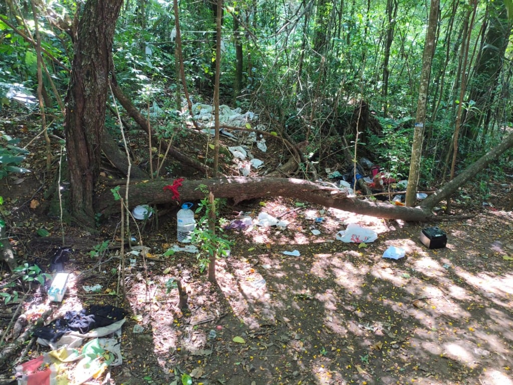 Durante o trabalho policial, os agentes constataram que a área de mata é utilizada como local de permanência por algumas pessoas, com a presença de colchões e travesseiros, o que reforça a vulnerabilidade do espaço.