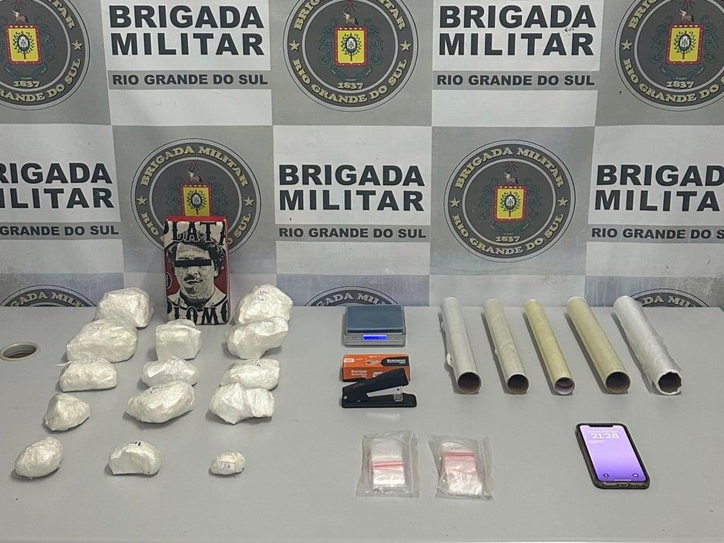 Conforme a corporação, a abordagem iniciou em via pública, quando a jovem foi flagrada com porções de entorpecentes. No desdobramento da ação, os policiais apreenderam aproximadamente 2,776 quilos de cocaína, entre um tijolo e 14 porções fracionadas, além de balança de precisão, materiais utilizados para fracionamento e um telefone celular.