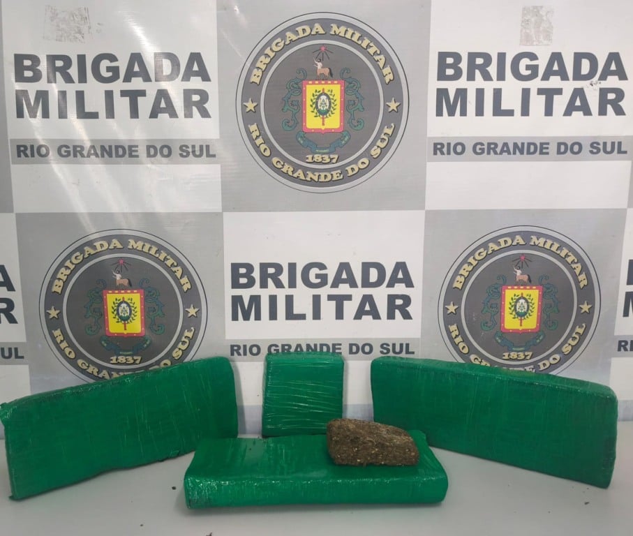A Brigada Militar apreendeu quatro tijolos de maconha na manhã desta sexta-feira (12), durante patrulhamento no bairro Desvio Rizzo, em Caxias do Sul. A ação foi realizada por uma equipe do 12º Batalhão de Polícia Militar.