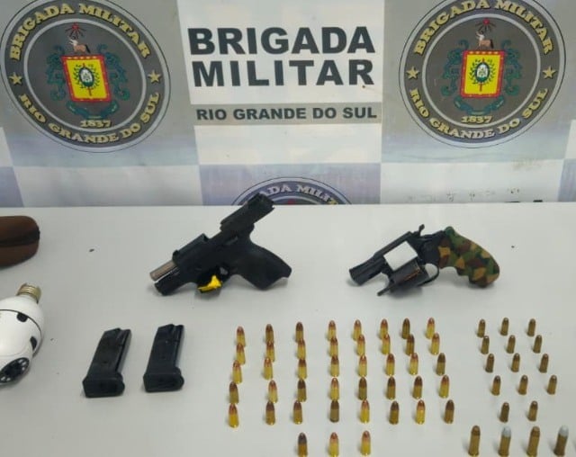 Já durante a noite, no bairro Kayser, os policiais atenderam uma denúncia de disparo de arma de fogo e localizaram um homem em posse de duas armas dentro de sua residência: um revólver calibre .38 e uma pistola calibre 9mm com a numeração suprimida, além de diversas munições de diferentes calibres.