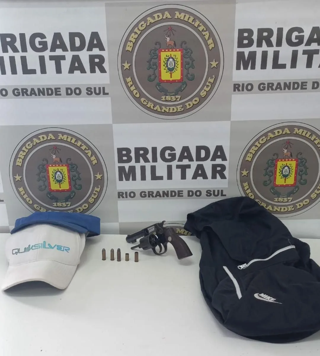 Conforme o registro os indivíduos, que estavam na posse de uma arma de fogo, tentarem roubar um Ford Focus. O suspeito de 21 anos, inclusive, efetuou um disparo em via pública. Diante disso, uma equipe da Brigada Militar (BM) foi acionada, encontrando e prendendo os autores.