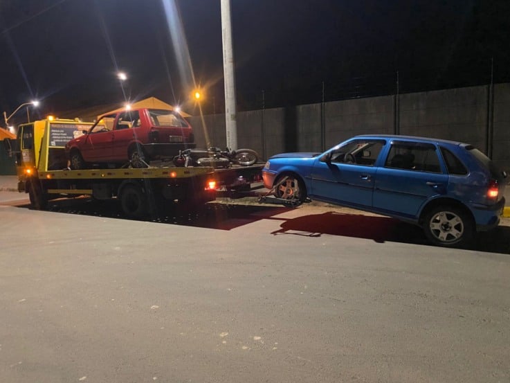 Segundo o registro, ao avistar o posto de controle o condutor de um Fiat Uno freou bruscamente, engatou a marcha à ré e manobrou para fugir do local. Os policiais o acompanharam até o interior de um condomínio residencial, onde efetuaram a abordagem.